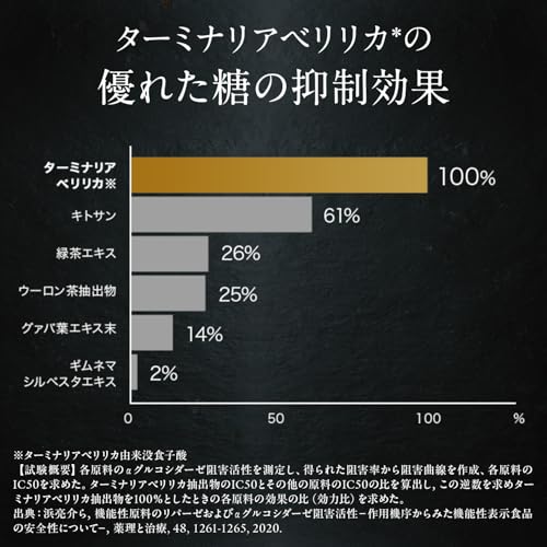 本製品は主成分ターミナリアベリリカ由来の没食子酸を含み、食事に含まれる糖や脂肪の吸収を抑える効果が報告されています。