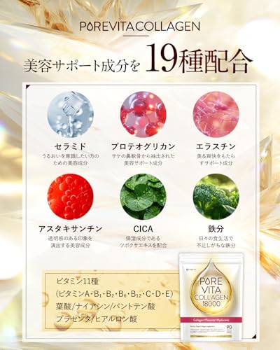 さらに注目すべきは、話題の美容成分プラセンタとヒアルロン酸をはじめ、セラミドやプロテオグリカンなど19種類もの美容サポート成分を配合している点です。