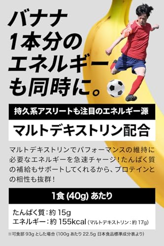 本製品はたんぱく質に加えて、持久系アスリート向けにマルトデキストリンを配合してエネルギー補給を強化しています。