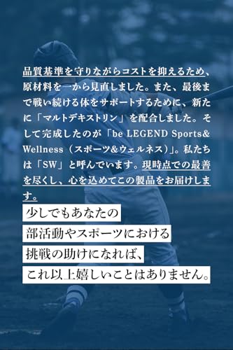 ビーレジェンド Sports&Wellness(SW)チョコ風味は、部活動やスポーツに取り組む方々のパフォーマンス向上を目指した新シリーズのプロテインです。