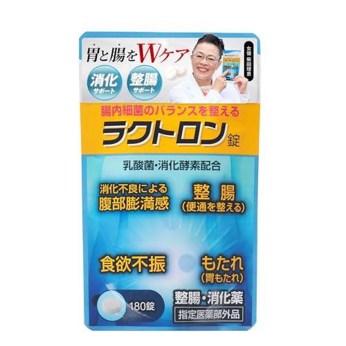 ラクトロン錠は消化を助ける成分と、腸内の善玉菌を増やす植物性乳酸菌120mgを配合し、胃と腸の両方のバランスを整えます。