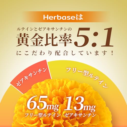【60日分】 ルテイン 65mg ゼアキサンチン 13mg サプリ (ルティンとゼアキサンチンの5:1黄金比率) フリー体 国内製造 Lutein Zeaxanthin 高濃度 Herbase(ハーベース) 中間 画像