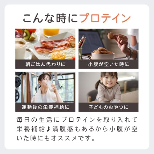 水や牛乳でも溶けやすい特殊加工が施されているため、手軽にタンパク質補給が可能です。