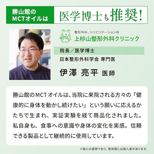 特に「医師推奨 MCTオイル 勝山ネクステージ」は、中鎖脂肪酸100%(C8:C10比率6:4)を植物油由来で抽出し、高品質かつ安全性に配慮した製品として評価されています。