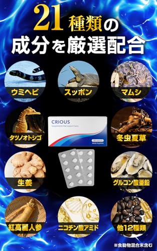 また、オットセイやウミヘビなどの伝統的な滋養強壮素材を含む20種以上の成分配合で、単一成分に頼らない総合的な健康サポートを志向しています。