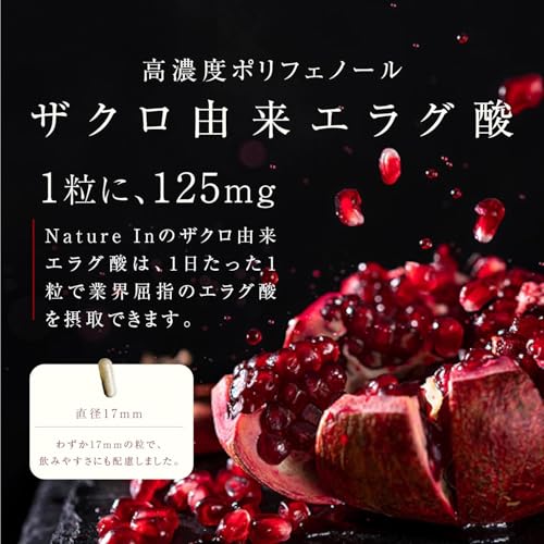 特にザクロ由来のエラグ酸125mgを1粒に凝縮したNature Inの国産サプリは、信頼性の高いGMP認定工場製造で安心感も得られます。