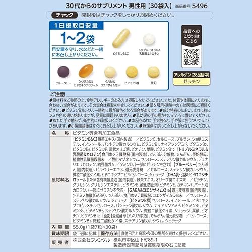ファンケルの30代からの男性用サプリメントは、日々の忙しい生活で不足しがちな栄養素をバランスよく補うために設計された栄養機能食品です。