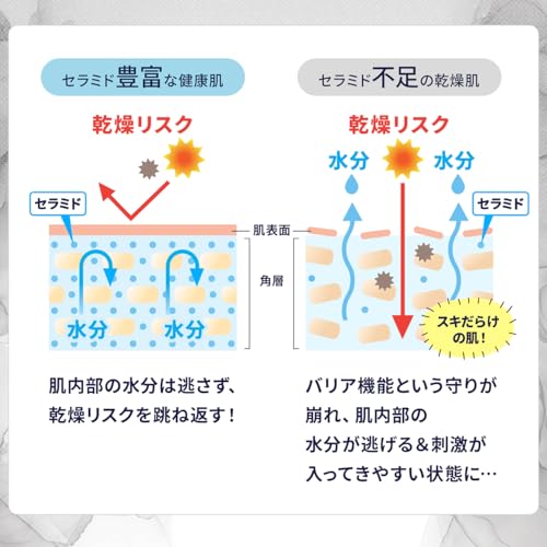 加齢や環境ストレスにより減少する肌内部のセラミドを補うことで、乾燥や敏感肌の改善が期待できます。