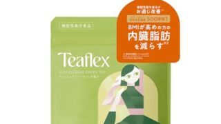 Teaflexは国内製造のイソマルトデキストリンや米ぬか発酵物、乳酸菌、ビタミン、葉酸など、脂肪分解や腸内環境を整える機能性表示食品として信頼性が高いです。