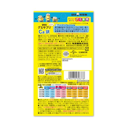 成長期のお子様の健康を支えるために設計された「UHA味覚糖 グミサプリキッズ」は、カルシウムと鉄分を中心にバランス良く配合されたサプリメントです。